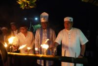 TIDORE— Wakil Wali Kota Tidore Kepulauan Ahmad Laiman bersama Sultan Tidore Husain Syah menyalakan obor dalam prosesi Tabe Guto di halaman Kedaton Kesultanan Tidore,…