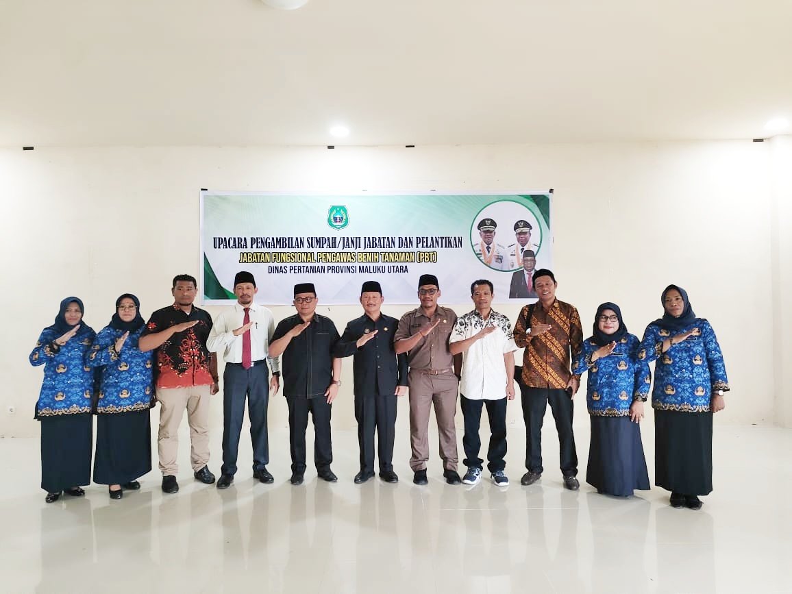 SOFIFI, –  8 orang pegawai Dinas Pertanian (Distan) Provinsi Maluku Utara berhasil lulus dalam tes secara nasional untuk seleksi jabatan fungsional Pengawas Benih Tanaman (PBT), namun sesuai kuota hanya 4 orang yang dilantik dalam upacara pengambilan sumpah/janji jabatan oleh Staf Ahli Gubernur Bidang Ekonomi, Keuangan dan Pembangunan, Mulyadi Wowor atas nama Gubernur Malut yang berlangsung di kantor Distan, Kamis (31/8/2023).