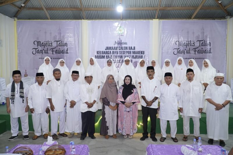 TIDORE — Sebanyak 27 jamaah calon haji keluarga dan sesepuh Kelurahan Mareku, Kota Tidore Kepulauan, musim haji 1447 Hijriah/2026 Masehi resmi dilepas dalam sebuah seremoni di Gedung Serbaguna Mareku, Kecamatan Tidore Utara, Jumat (17/4/2026) malam.