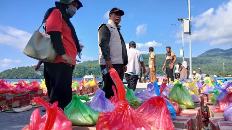 Bantuan berupa paket sembako disalurkan kepada 442 warga di empat desa yang berada di Pulau Maitara, Kecamatan Tidore Utara, Senin (27/4/2025).